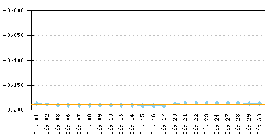 | 01 | -0,187 | | 02 | -0,189 | | 03 | -0,191 | | 06 | -0,191 | | 07 | -0,190 | | 08 | -0,191 | | 09 | -0,191 | | 10 | -0,191 | | 13 | -0,191 | | 14 | -0,191 | | 15 | -0,192 | | 16 | -0,192 | | 17 | -0,192 | | 20 | -0,187 | | 21 | -0,186 | | 22 | -0,186 | | 23 | -0,186 | | 24 | -0,186 | | 27 | -0,186 | | 28 | -0,186 | | 29 | -0,187 | | 30 | -0,188 |